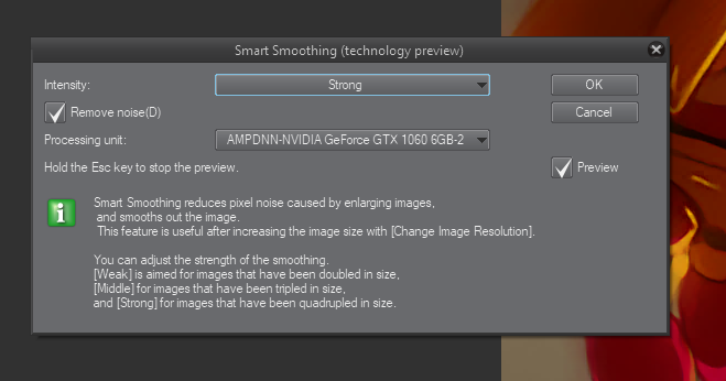 To me— despite its limited actual use in the day-to-day of an artist in production— this is the star of this update. The good folks at CELSYS continue to dabble with deep learning, and has given us Neural Network based Smoothing in the Clip Studio Paint UI!