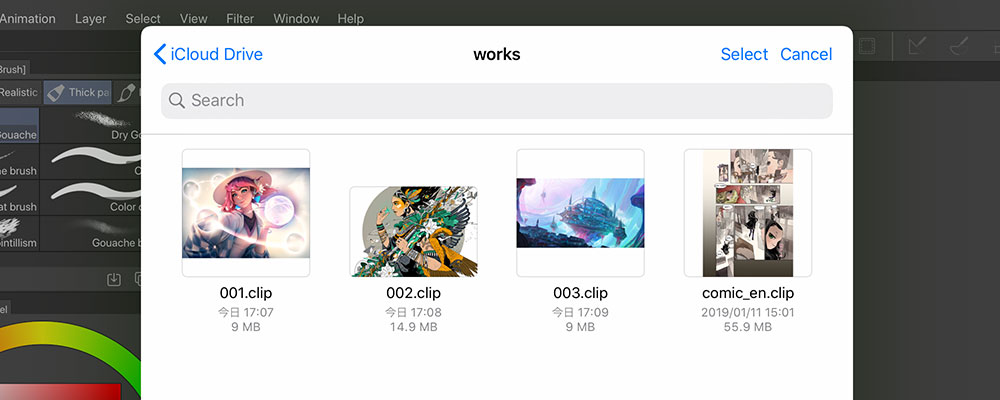 All your previous .clip files saved before this version will now be visible in the On My iPad\Clip Studio folder, which is visible in the Files app.