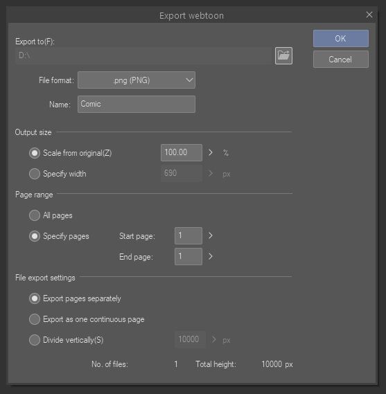 They added export options to comply with the file requirements of webtoons.com.