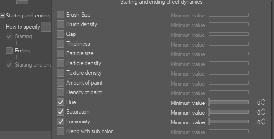 These new controls for hue, saturation, and luminosity options have also been added to the [Starting and ending] parameters.