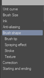 The complete controls for brush settings can be found in the [Sub Tool Detail] window. You can access this by clicking on the wrench icon on the bottom right of the [Tool property] palette. It can also be opened by going to the main menu [Window] > [Sub Tool Detail].