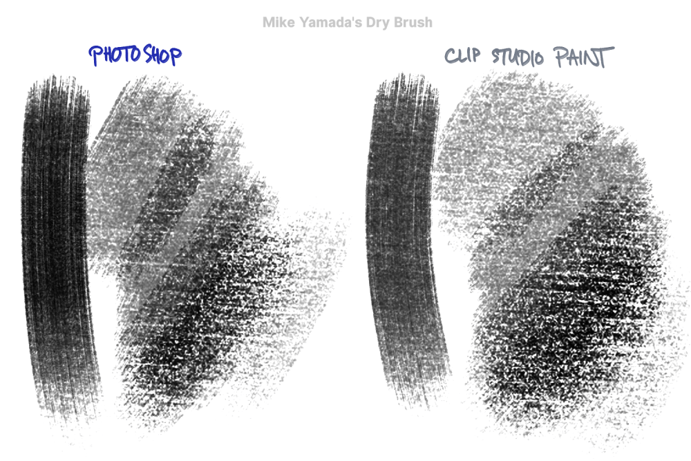 This means that if Clip Studio Paint does it a different way than Photoshop, the results can look a little different. And if Clip Studio Paint doesn’t have that brush feature at all, it just won’t do that part at all. So the brush can end up looking really different.