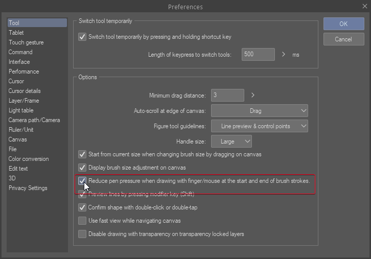 For drawing inputs that don’t have pressure sensitivity (eg, capacitive touch on a phone or tablet), they’ve added the option to simulate tapered pen pressure based on the stroke speed. This can be found in Preferences > Tool. The checkbox is called “Reduce pen pressure when drawing with finger/mouse at the start and end of brush strokes”.